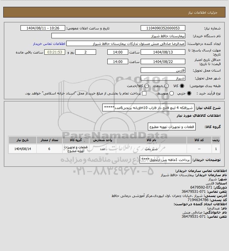 نام دستگاه خریدار:بیمارستان حافظ شیراز