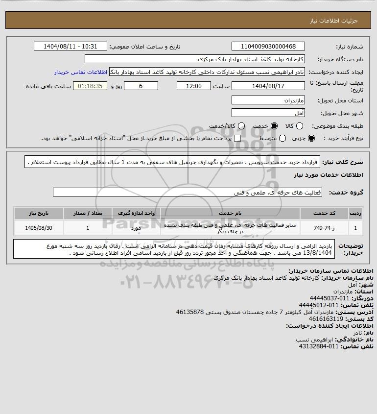 نام دستگاه خریدار:کارخانه تولید کاغذ اسناد بهادار بانک مرکزی