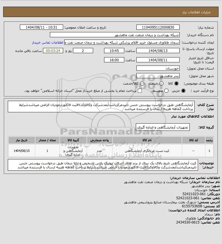نام دستگاه خریدار:شبکه بهداشت و درمان صنعت نفت ماهشهر