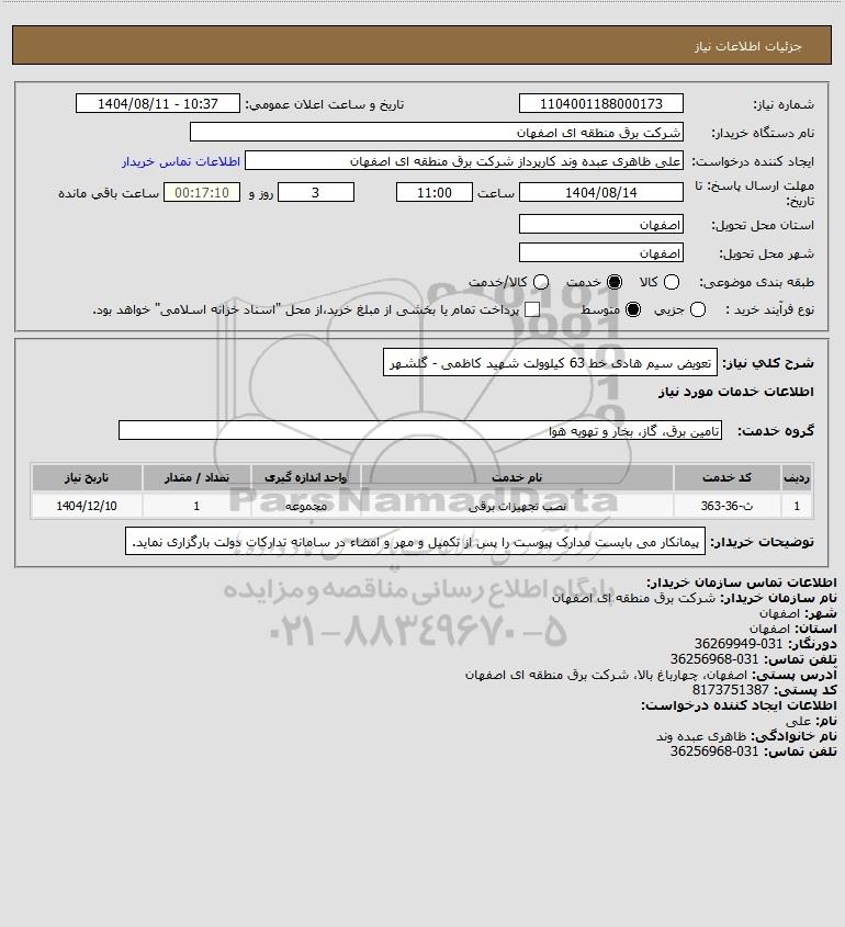 نام دستگاه خریدار:شرکت برق منطقه ای اصفهان
