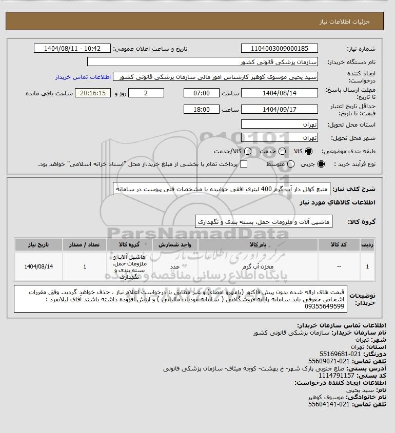 نام دستگاه خریدار:سازمان پزشکی قانونی کشور