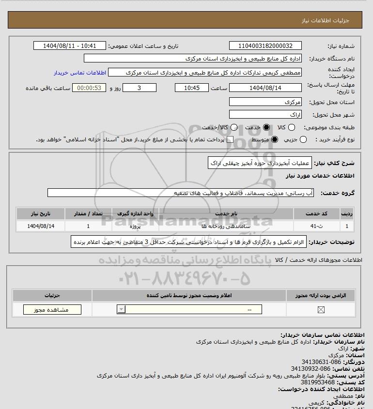 استعلام عملیات آبخیزداری حوزه آبخیز چپقلی اراک, استعلام عملیات آبخیزداری حوزه آبخیز چپقلی اراک