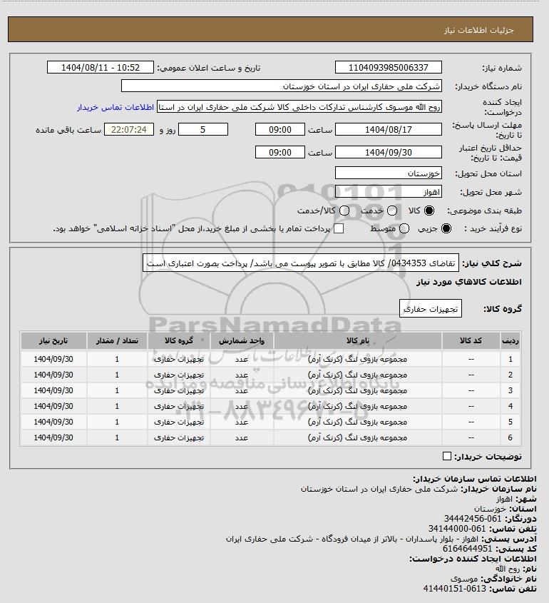 نام دستگاه خریدار:شرکت ملی حفاری ایران در استان خوزستان