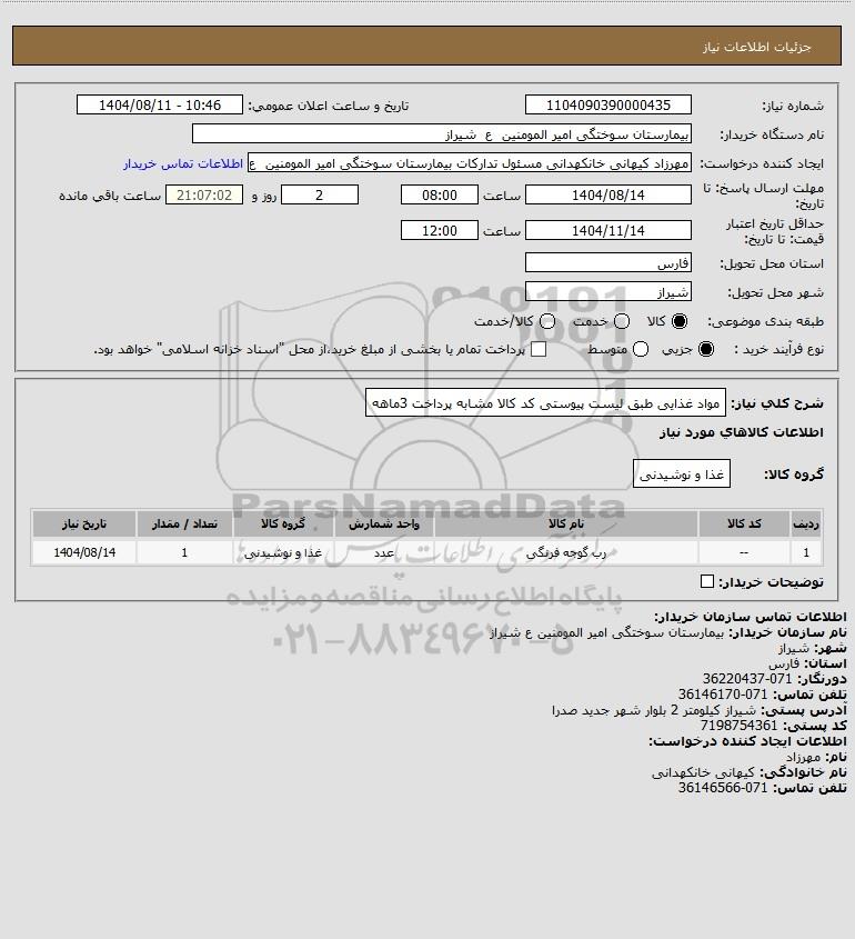 شرح کلی نیاز: مواد غذایی طبق لیست پیوستی کد کالا مشابه پرداخت 3ماهه