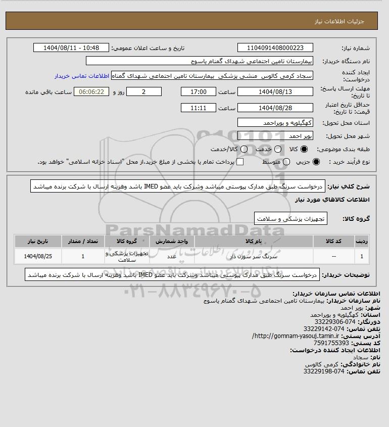 نام دستگاه خریدار:بیمارستان تامین اجتماعی شهدای گمنام یاسوج