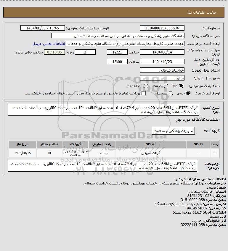 نام سازمان خریدار: دانشگاه علوم پزشکی و خدمات بهداشتی درمانی استان خراسان شمالی