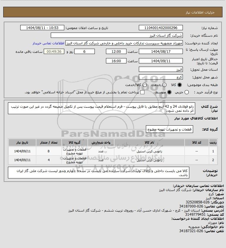 نام سازمان خریدار: شرکت گاز استان البرز