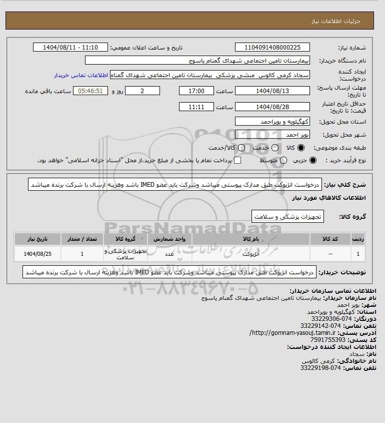 نام دستگاه خریدار:بیمارستان تامین اجتماعی شهدای گمنام یاسوج
