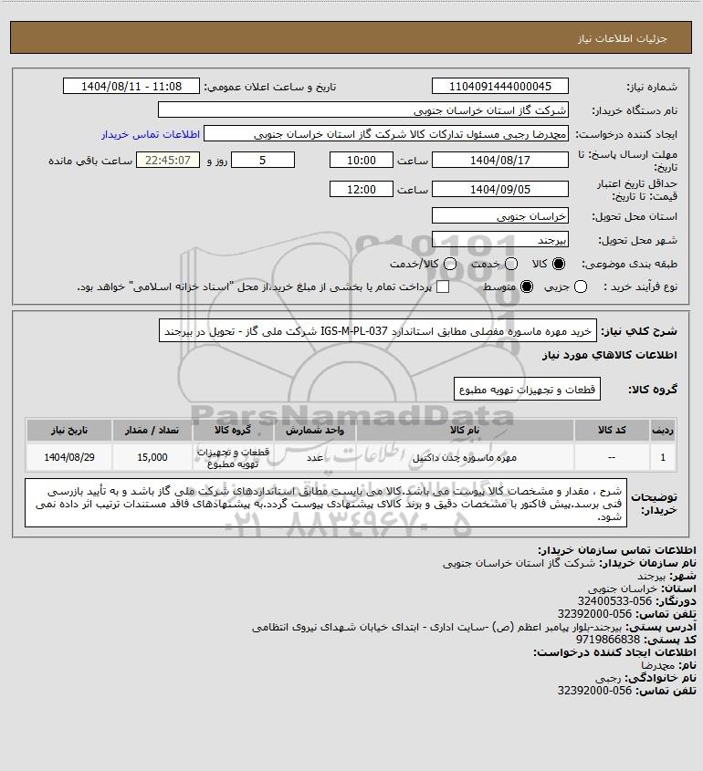 نام دستگاه خریدار:شرکت گاز استان خراسان جنوبی