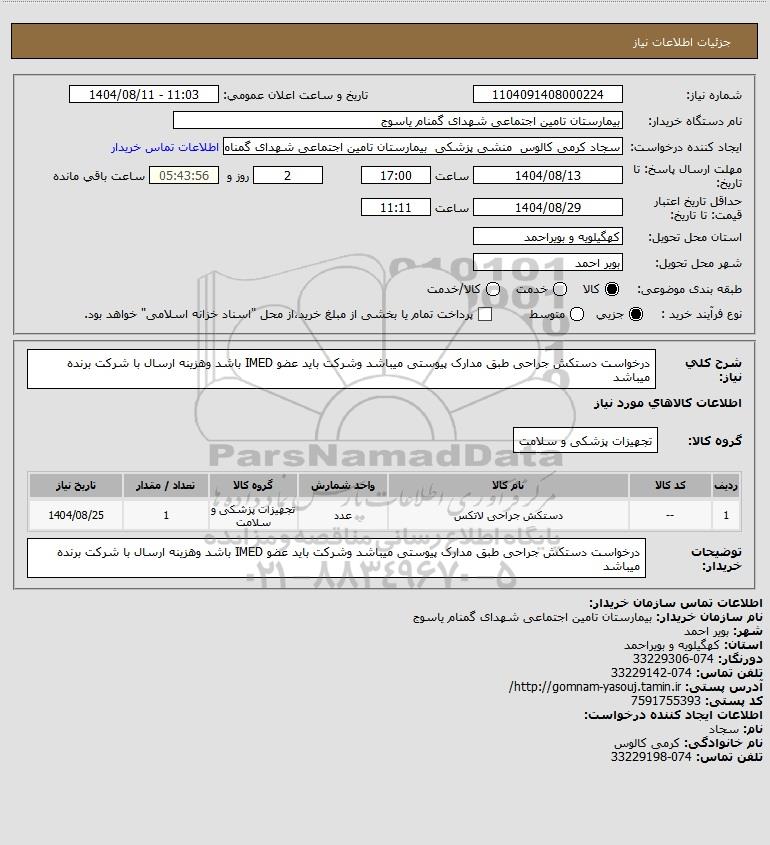 نام دستگاه خریدار:بیمارستان تامین اجتماعی شهدای گمنام یاسوج