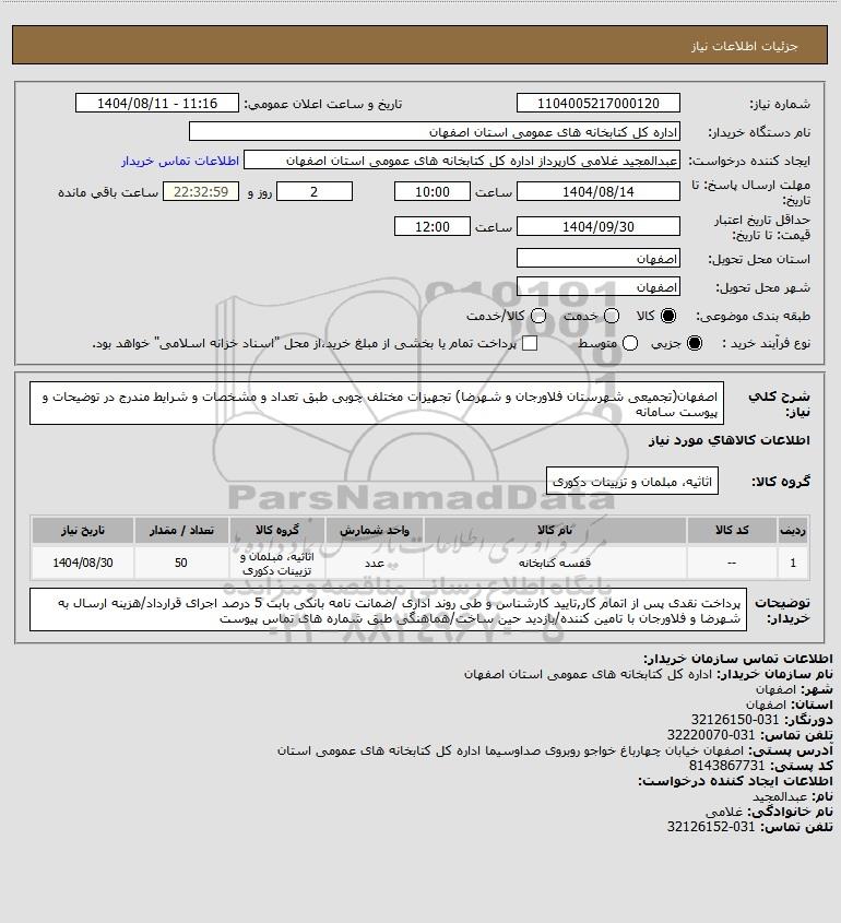 نام دستگاه خریدار:اداره کل کتابخانه های عمومی استان اصفهان