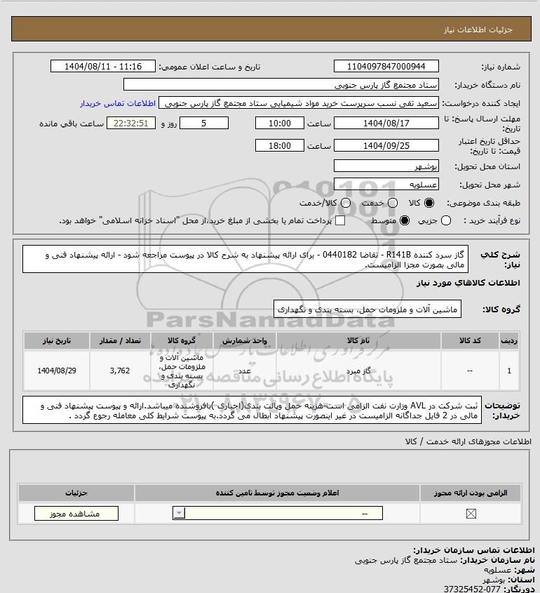 شرح کلی نیاز: گاز سرد کننده R141B - تقاضا 0440182 - برای ارائه پیشنهاد به شرح کالا در پیوست مراجعه شود - ارائه پیشنهاد فنی و مالی بصورت مجزا الزامیست.