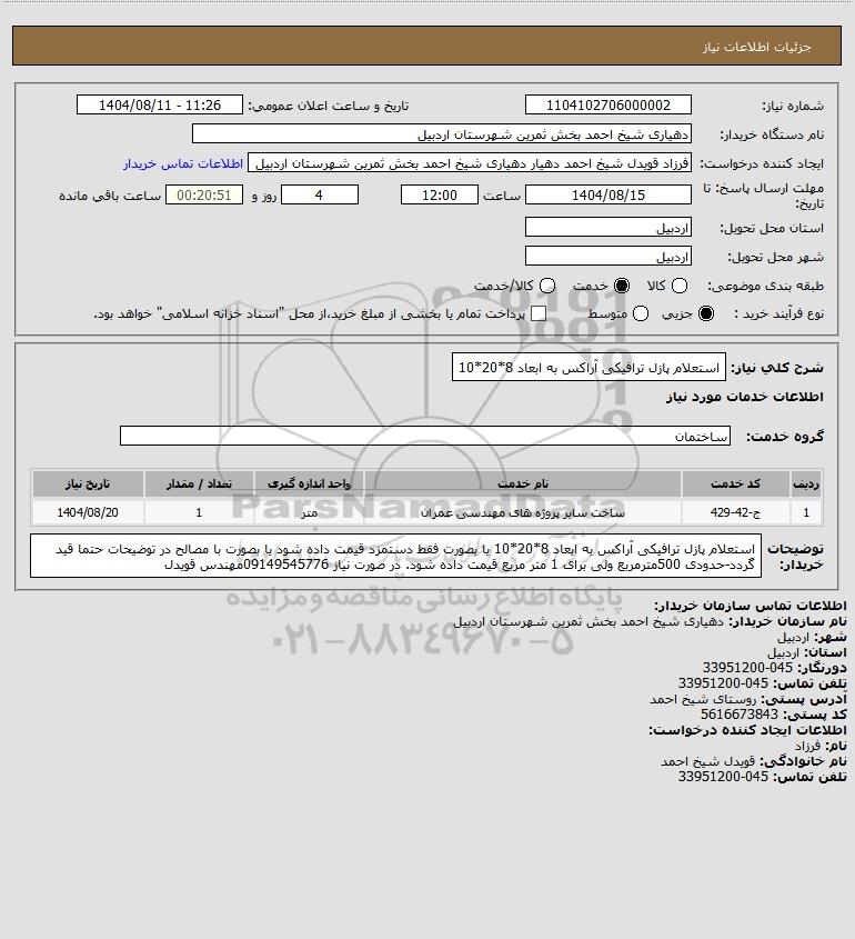 توضیحات خریدار:استعلام پازل ترافیکی آراکس به ابعاد 8*20*10