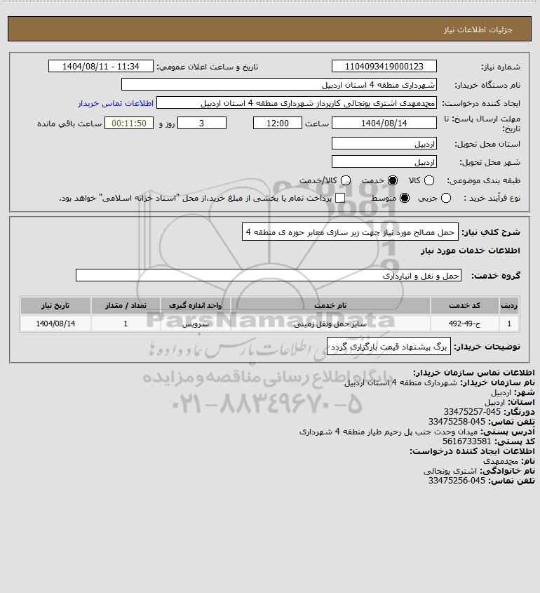 نام دستگاه خریدار:شهرداری منطقه 4 استان اردبیل