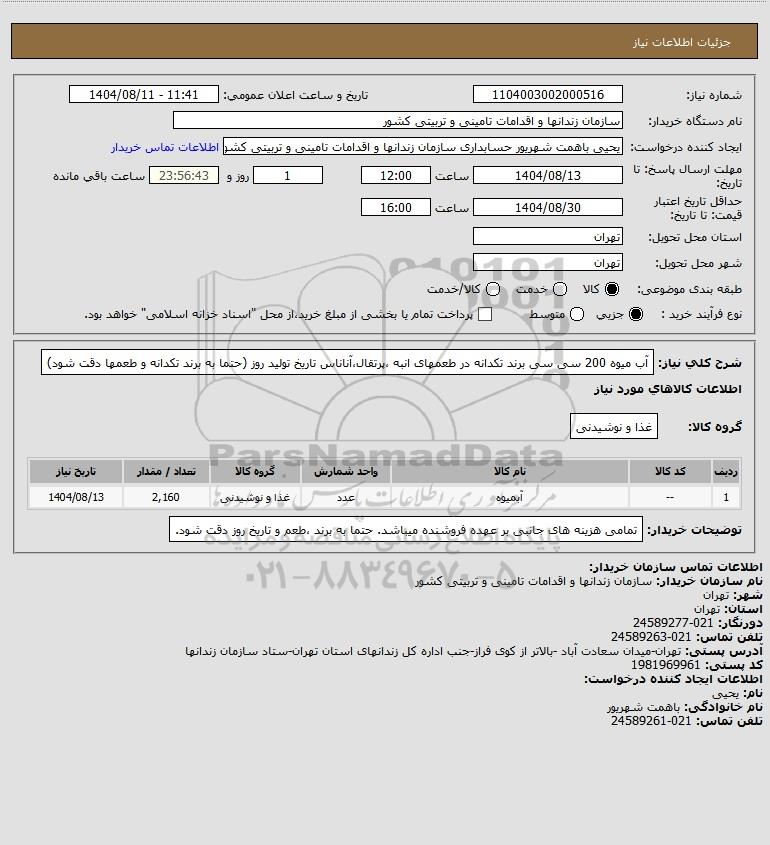 | 1 | -- | آبمیوه | عدد | غذا و نوشیدنی | 2,160 | 1404/08/13 |