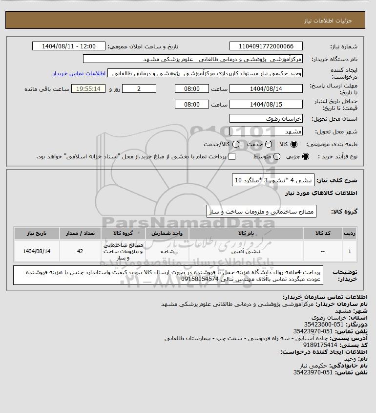 1 -- نبشی آهنی شاخه مصالح ساختمانی و ملزومات ساخت و ساز 42 1404/08/14