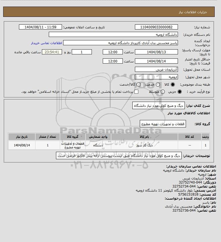 | 1 | -- | دیگ گاز سوز | دستگاه | قطعات و تجهیزات تهویه مطبوع | 1 | 1404/08/14 |