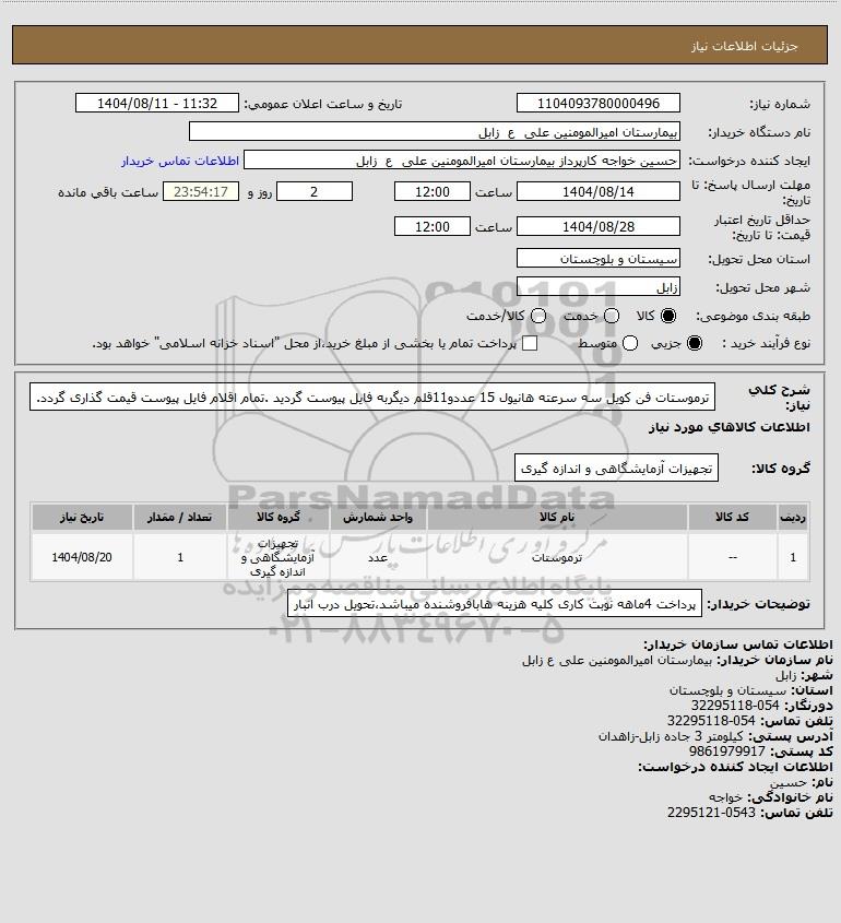 نام دستگاه خریدار:بیمارستان امیرالمومنین علی ع زابل