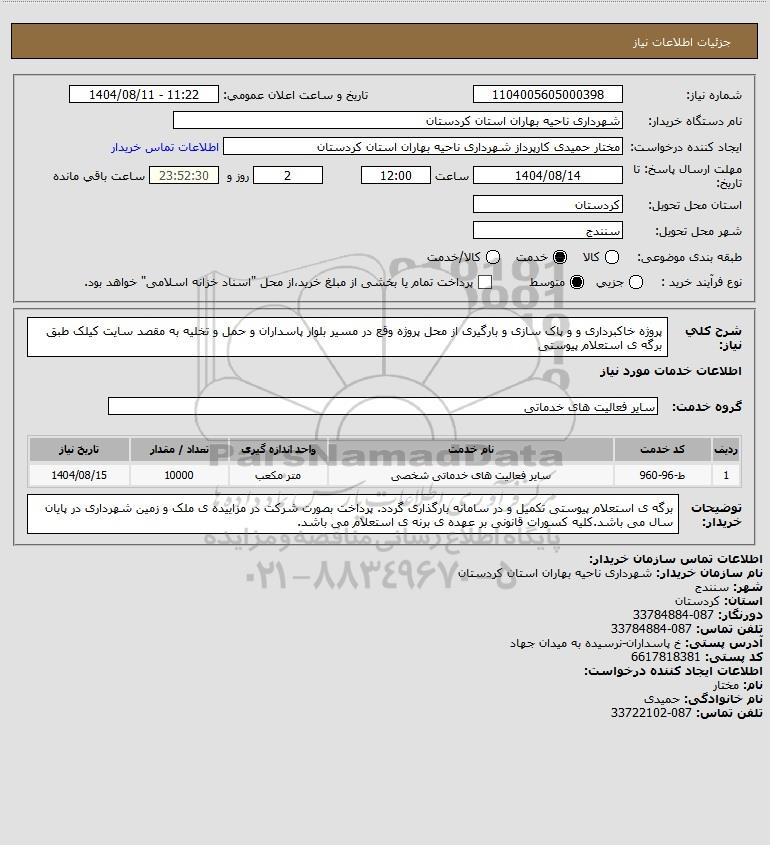 نام دستگاه خریدار:شهرداری ناحیه بهاران استان کردستان