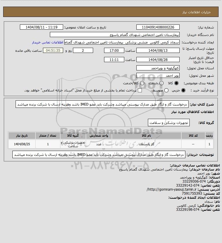 نام دستگاه خریدار:بیمارستان تامین اجتماعی شهدای گمنام یاسوج