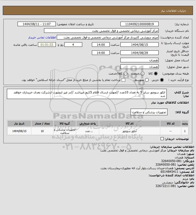 | 1 | -- | آنکور سوچور | عدد | تجهیزات پزشکی و سلامت | 10 | 1404/08/15 |