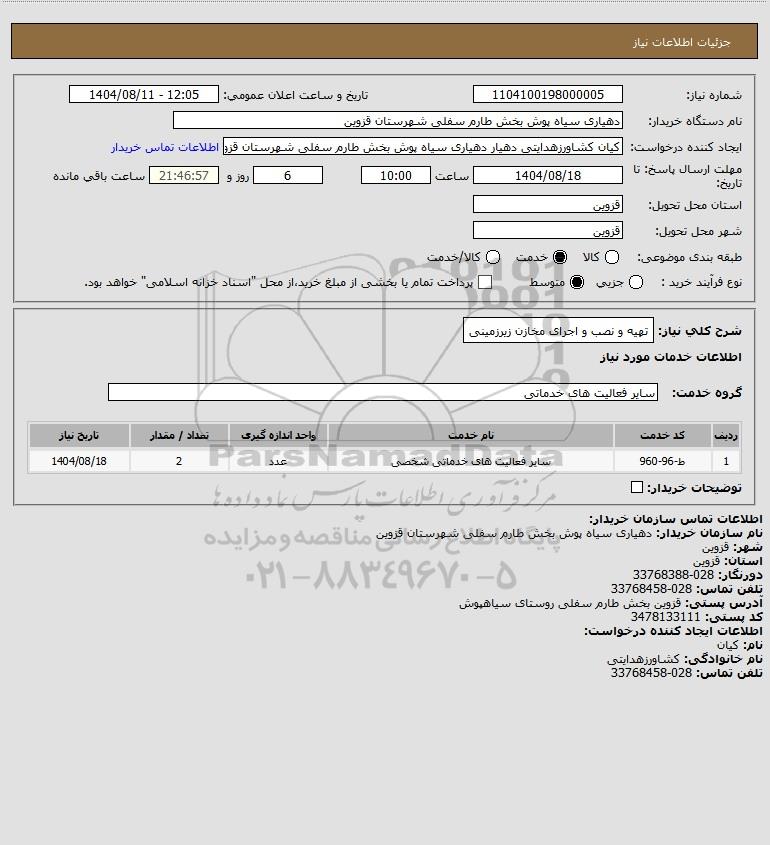 استعلام تهیه و نصب و اجرای مخازن زیرزمینی, استعلام تهیه و نصب و اجرای مخازن زیرزمینی