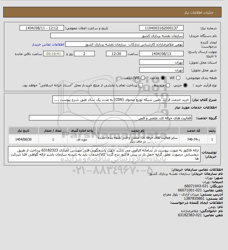 شرح کلی نیاز: خرید خدمت فرایند تامین شبکه توزیع محتوی (CDN) به مدت یک سال طبق شرح پیوست ....
