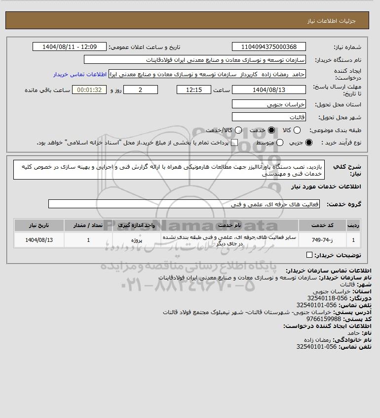 نام دستگاه خریدار:سازمان توسعه و نوسازی معادن و صنایع معدنی ایران فولادقاینات