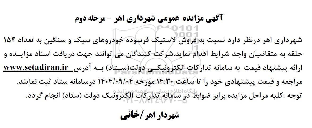 آگهی مزایده عمومی شهرداری اهر - مرحله دوم