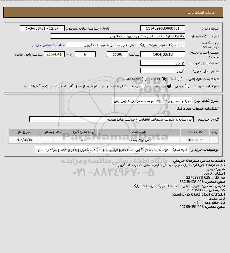 استعلام تهیه و نصب و راه اندازی دو عدد مخزن زباله زیرزمینی, استعلام تهیه و نصب و راه اندازی دو عدد مخزن زباله زیرزمینی