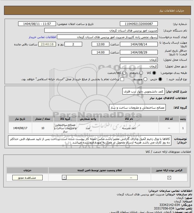 نام دستگاه خریدار:مدیریت امور پردیس های استان کرمان