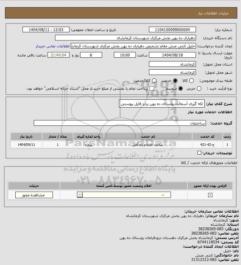 شرح کلی نیاز: لکه گیری آسفالت روستای ده پهن برابر فایل پیوستی