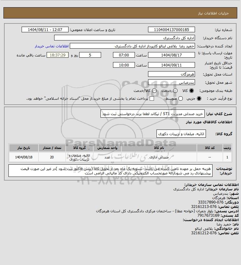 شرح کلی نیاز: خرید صندلی مدیریت ST1 / تیکاند