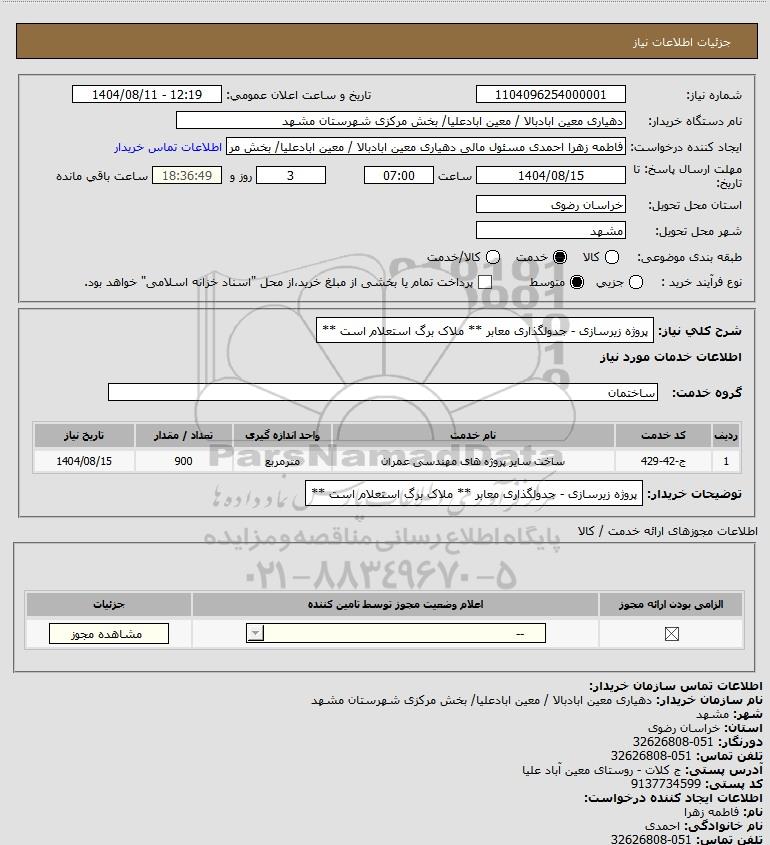 نام دستگاه خریدار:دهیاری معین ابادبالا / معین ابادعلیا/ بخش مرکزی شهرستان مشهد