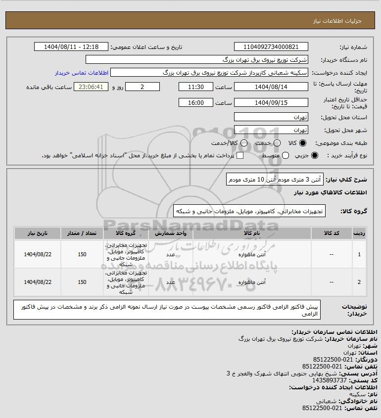 استعلام آنتن 3 متری مودم آنتن 10 متری مودم, استعلام آنتن 3 متری مودم آنتن 10 متری مودم