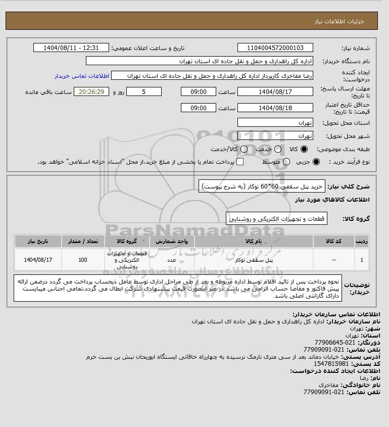 شرح کلی نیاز: خرید پنل سقفی 60*60 توکار (به شرح پیوست)