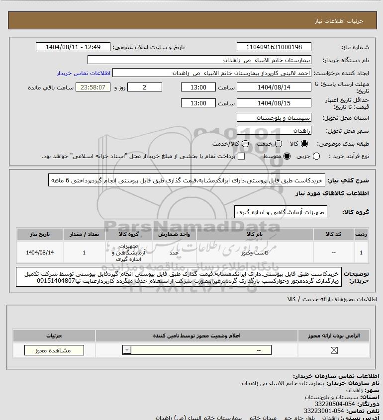استعلام خریدکاست طبق فایل پیوستی.دارای ایرانکدمشابه.قیمت گذاری طبق فایل پیوستی انجام گیردپرداختی 6 ماهه, استعلام خریدکاست طبق فایل پیوستی.دارای ایرانکدمشابه.قیمت گذاری طبق فایل پیوستی انجام گیردپرداختی 6 ماهه