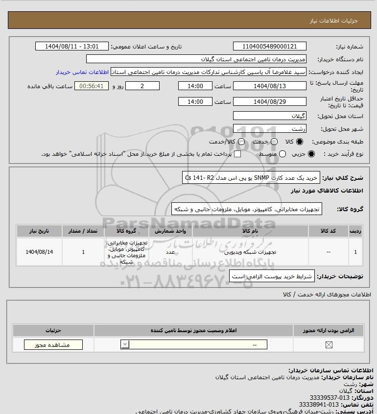 شرح کلی نیاز: خرید یک عدد کارت SNMP یو پی اس مدل Cs 141- R2