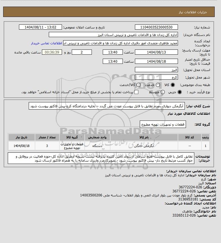 نام دستگاه خریدار:اداره کل زندان ها و اقدامات تامینی و تربیتی استان البرز