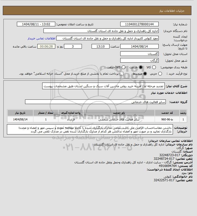 نام دستگاه خریدار:اداره کل راهداری و حمل و نقل جاده ای استان گلستان