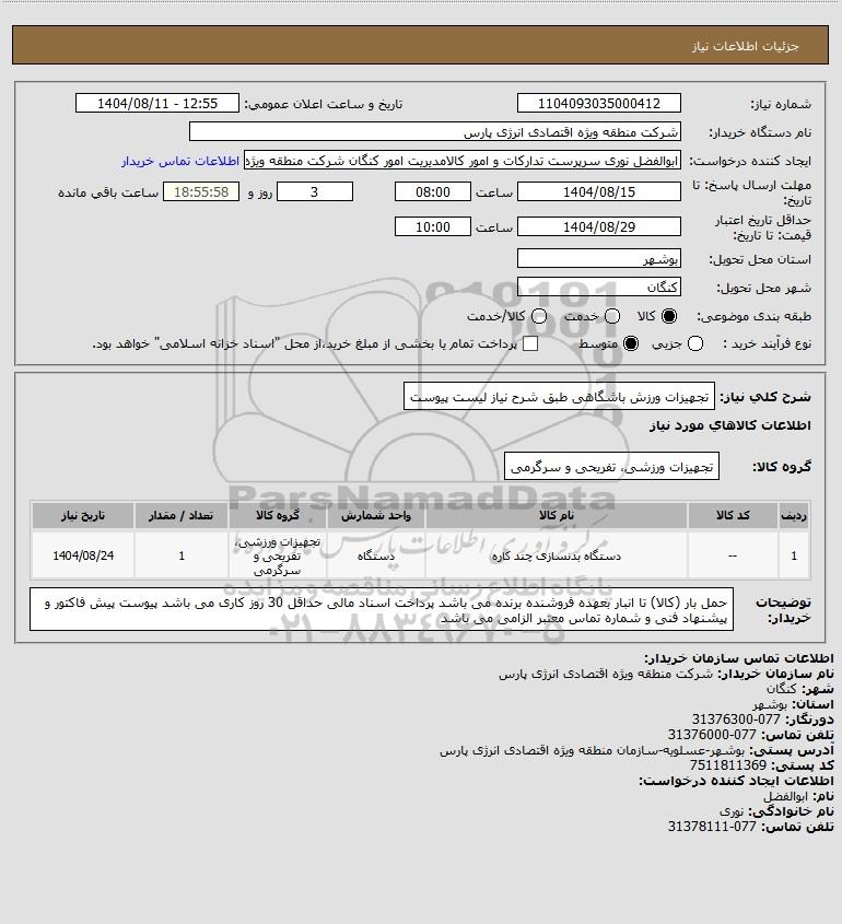 نام دستگاه خریدار:شرکت منطقه ویژه اقتصادی انرژی پارس