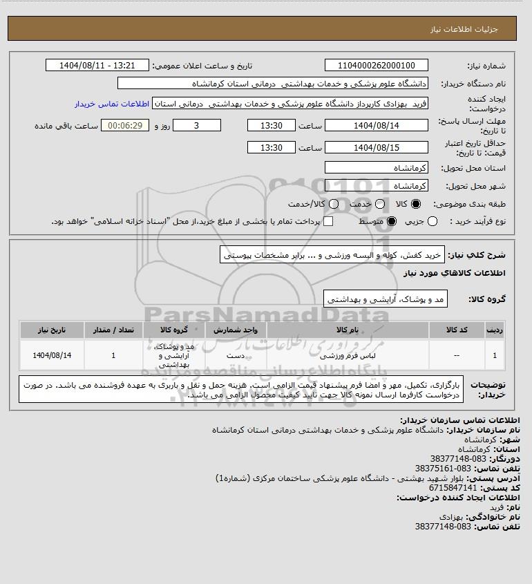 نام دستگاه خریدار:دانشگاه علوم پزشکی و خدمات بهداشتی درمانی استان کرمانشاه