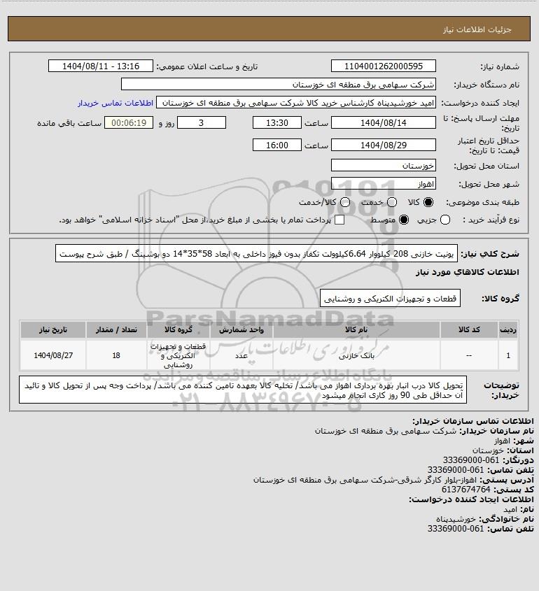 نام دستگاه خریدار:شرکت سهامی برق منطقه ای خوزستان
