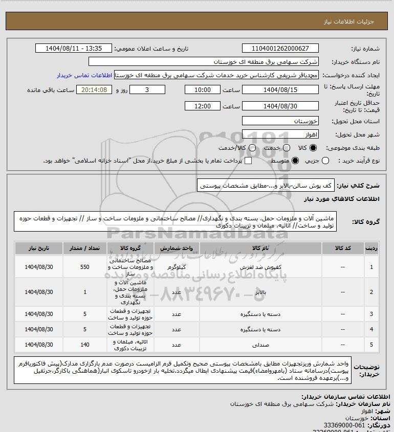 نام دستگاه خریدار:شرکت سهامی برق منطقه ای خوزستان