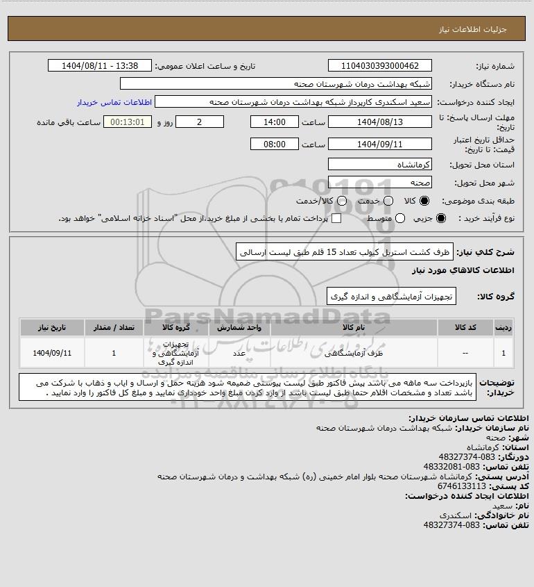 نام دستگاه خریدار:شبکه بهداشت درمان شهرستان صحنه