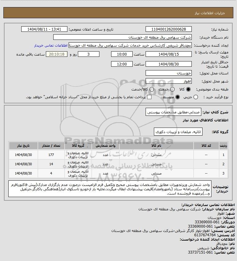 نام دستگاه خریدار:شرکت سهامی برق منطقه ای خوزستان