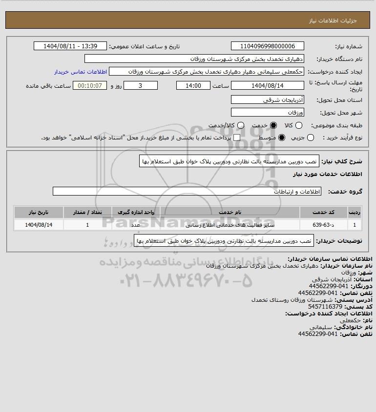 نام دستگاه خریدار:دهیاری تخمدل بخش مرکزی شهرستان ورزقان