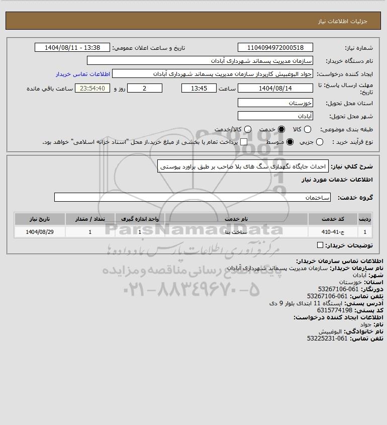 شرح کلی نیاز: احداث جایگاه نگهداری سگ های بلا صاحب بر طبق براورد پیوستی