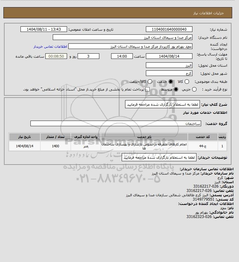 نام دستگاه خریدار:مرکز صدا و سیمای استان البرز