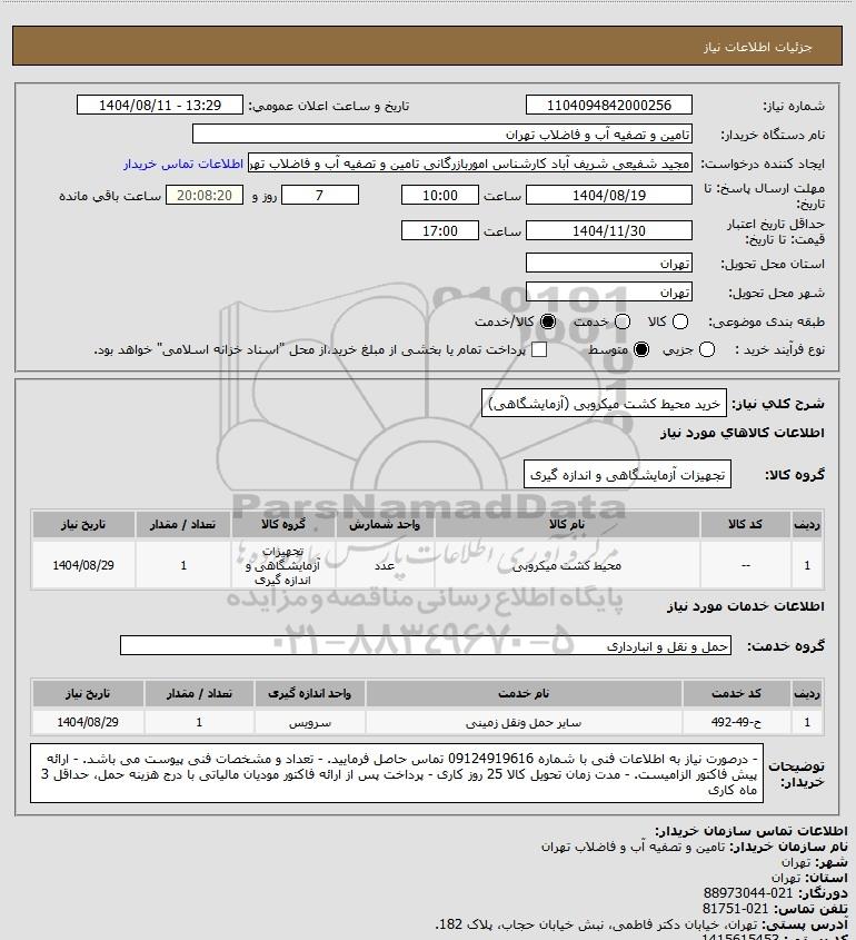 1 -- محیط کشت میکروبی عدد تجهیزات آزمایشگاهی و اندازه گیری 1 1404/08/29